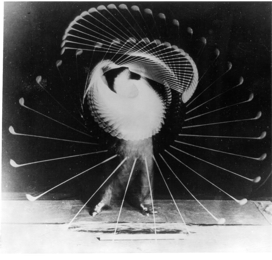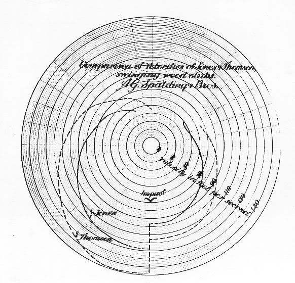 These graphs (see end of post) were derived from ultra high speed photos taken by Edgerton while at MIT for Spalding Bros in the 1930's. Spalding Golf Research Lab invented a special photo analysis machine that was used to produce the graphs. (1 feet/s = 0.682 mph)